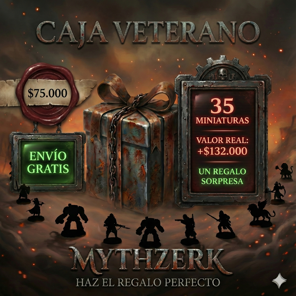 En el lejano futuro solo hay guerra... y regalos épicos. En MYTHZERK hemos preparado estas Cajas Sorpresa diseñadas para reforzar tus ejércitos, crear nuevas escuadras (Kill Teams) o simplemente disfrutar pintando lo más brutal del universo Grimdark.